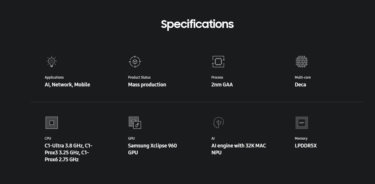 Exynos 2600 ถูกวางตัวให้เป็นชิปเรือธงรุ่นใหม่ของ Samsung ที่จะชนตรงกับ Snapdragon 8 Elite Gen 5 โดยไฮไลต์สำคัญคือการเป็นชิปสมาร์ตโฟนรุ่นแรกที่ผลิตบนกระบวนการ 2nm ซึ่งก้าวล้ำกว่าชิป 3nm ที่ Qualcomm ใช้อยู่ในปัจจุบัน