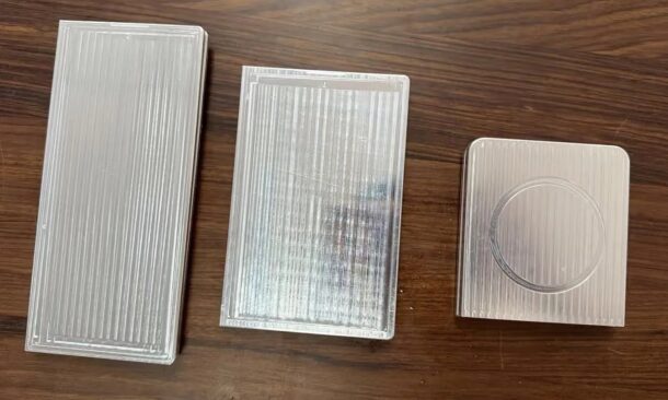 จากภาพที่หลุดออกมา ตัวเครื่องมีสัดส่วนเตี้ยและกว้างกว่า Galaxy Z Fold รุ่นปัจจุบันอย่างชัดเจน ลักษณะคล้ายพาสปอร์ตเมื่อพับปิด และมีโมดูลกล้องหลังคู่