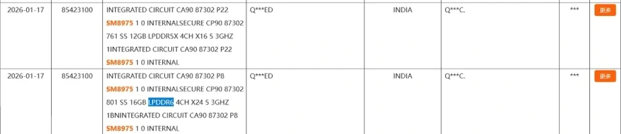 รายงานจาก ITHome ระบุว่า รุ่น Pro จะรองรับแรม LPDDR6 ซึ่งถือเป็นการอัปเกรดครั้งใหญ่จาก LPDDR5X ที่ใช้ในรุ่นก่อนหน้า โดยข้อมูลนี้ถูกพบในเอกสารศุลกากรของชิปที่ใช้รหัส SM8975