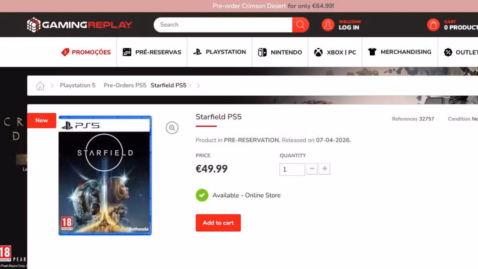 ข้อมูลหลุดล่าสุดมาจากร้านค้าออนไลน์ในโปรตุเกสชื่อ GamingReplay ซึ่งได้เปิดหน้าสินค้า Starfield เวอร์ชัน PlayStation 5 พร้อมให้พรีออเดอร์ โดยระบุวันวางจำหน่ายไว้ที่ 7 เมษายน 2026 และตั้งราคาไว้ต่ำกว่า 50 ยูโร หรือประมาณ 57 ดอลลาร์สหรัฐ (ประมาณ 2,050 บาท)