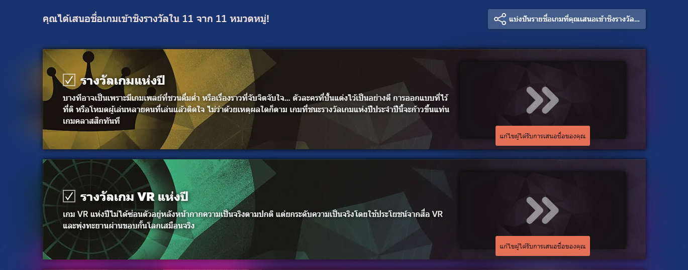 ผู้เล่นยังสามารถร่วมโหวตหมวดที่ออกแบบมาเฉพาะสำหรับผู้ใช้ Steam เช่น Best Game on Steam Deck ครอบคลุมเกมยอดนิยมที่รองรับ Steam Deck อย่าง Hades 2, Ninja Gaiden 4 และ Hollow Knight: Silksong รวมถึงหมวด Better With Friends ที่เน้นเกมมัลติเพลเยอร์เปิดตัวใหม่ภายในปีที่ผ่านมา ทั้งแบบเสียเงินอย่าง REPO และ ARC Raiders หรือเกมเล่นฟรีอย่าง Where Winds Meet และ Marvel Rivals