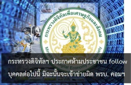 เตรียมรับกฏหมายยุคใหม่! กระทรวงดิจิทัลฯประกาศห้ามประชาชนฟอลโลว์และแชร์เรื่องจากบุคคลต่อไปนี้ มิฉะนั้นจะถือว่ากระทำผิด พรบ. คอมฯ