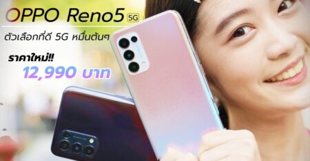 OPPO Reno5 5G ตัวเลือกที่ดีในสมาร์ทโฟน 5G ราคาหมื่นต้น ครบเครื่องสเปคแรงกล้องคุณภาพสูง ชาร์จไว 65W ราคาใหม่น่าใช้กว่าเดิม เพียง 12,990 บาท!!