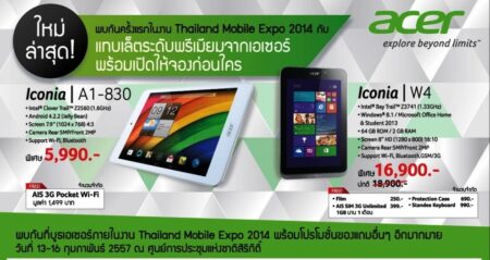 ACER เปิดตัวแท็บเล็ต ICONIA W4 (Windows 8.1) และ ICONIA A1-830 (Android) พร้อมโปรโมชั่้นเพียบ ในงาน #MobileExpo 2014
