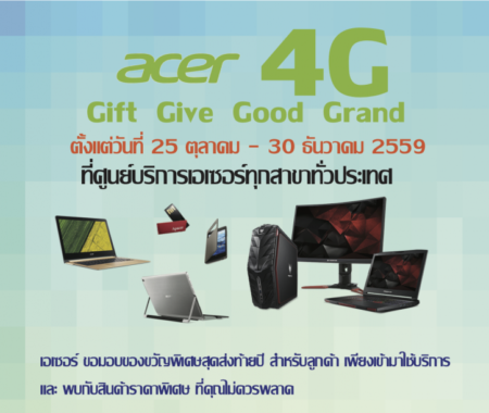 Acer 4G จัดกิจกรรมดีๆ ส่งท้ายปี รับของที่ระลึกและของแถมมากมาย พร้อมสินค้า อะไหล่ราคาพิเศษ เพียงเข้าใช้บริการที่ศูนย์บริการเอเซอร์