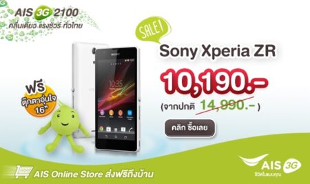 AIS Online Store จัดโปรโมชั่น Sony Xperia ZR ลดเหลือ 10,190 บาท บริการส่งถึงบ้านแถมตุ๊กตาอุ่นใจฟรี
