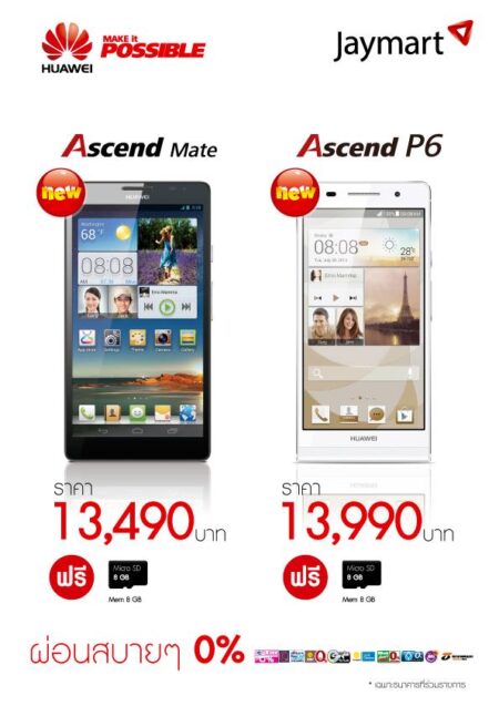 !!!Huawei Ascend P6 แอนดรอยด์บางที่สุดในโลก วางจำหน่ายในไทยแล้ว ราคา 13,990 บาท แถมฟรี Memory 8 GB โดย Jaymart