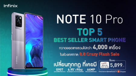 Infinix NOTE 10 Pro ขายได้กว่า 4,000 ในเทศกาล 8.8 Crazy Flash Sale บน Shopee