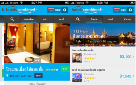 แนะนำแอพ : HotelsCombined (Android, iOS) ตรวจสอบราคาค้นหาโรงแรม กว่า 400,000 แห่งทั่วโลก ในเวอร์ชั่นภาษาไทย
