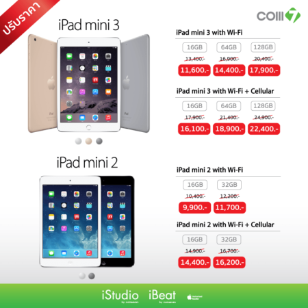 ล้างสต๊อก!! iStudio ลดราคา iPad mini 2 และ 3 เริ่มต้น 9,900 บาท ต้อนรับการมาของรุ่นใหม่
