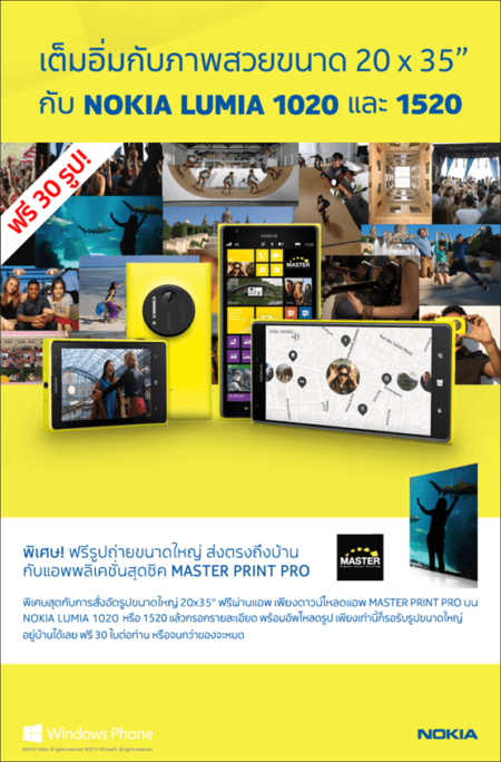 ผู้ใช้ Nokia Lumia 1020 และ 1520 อย่าพลาดสิทธิ์! ลงแอพ MASTER PRINT PRO วันนี้ สั่งอัดภาพขนาดโปสเตอร์ฟรี 30 ภาพ ทันทีครับ