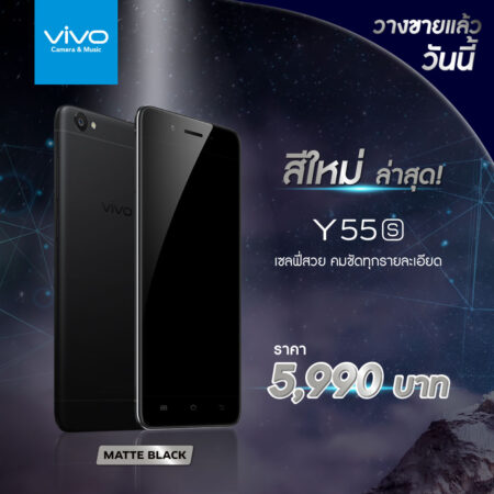 มือถือ Vivo ราคาประหยัด Y55s ปล่อยสีใหม่ สีดำ ( Matte Black ) เอาใจวัยรุ่น