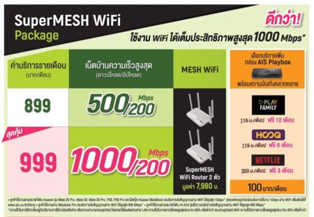 จัดเต็ม!! AIS Fibre ปล่อยแพ็กเกจใหม่ แถมเราเตอร์เทพ Mesh WIFi ความเร็วระดับ 1Gbps