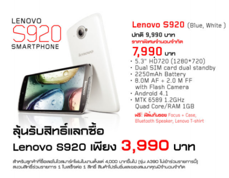 โปรโมชั่น Mobile Expo จาก Lenovo มาแล้ว! ถูกแล้วยังถูกลงได้อีก S920 แค่เจ็ดพันเก้า พร้อมของแถมทุกเครื่องทุกรุ่น