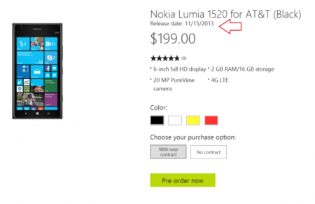 Nokia Lumia 1520 โผล่ให้จองบนหน้าเว็บ Microsoft Store ที่อเมริกา ด้วยราคา 17,200 บาทเท่านั้น