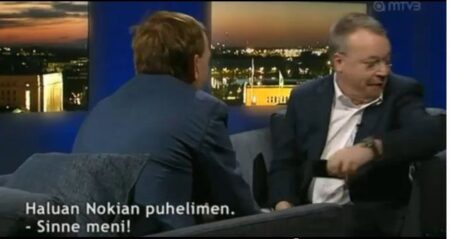 Stephen Elop จัดหนัก!! โยน iPhone ของพิธีกรทิ้งในขณะออกรายการทีวี