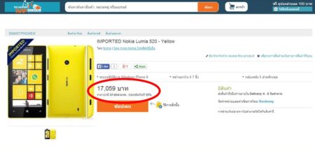 แพงมาก!! Nokia Lumia 520 ราคาเต็ม 37,804 บาท ลดเหลือ 17,059 บาท อ้างนำเข้าจากฮ่องกง โดย LAZADA.CO.TH ?