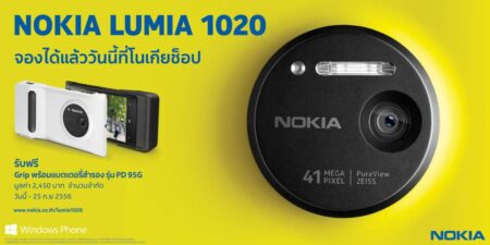 Nokia Shop ประกาศเปิดจอง Nokia Lumia 1020 อย่างเป็นทางการแล้ว!! แถม Grip มูลค่า 2,490 บาท พร้อมแบตเตอรี่สำรอง