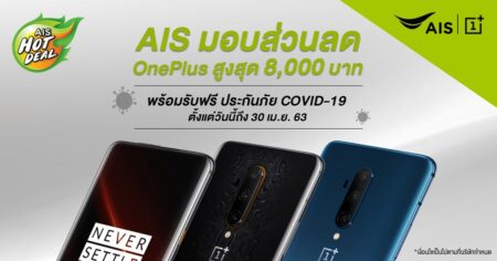 สั่งซื้อ OnePlus ผ่าน AIS รับส่วนลดสูงสุด 8,000 บาท พร้อมฟรีประกันภัย COVID-19