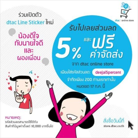 DTAC ปล่อยรหัสให้ลดราคาจากช้อป Onlineได้ที่ 5%