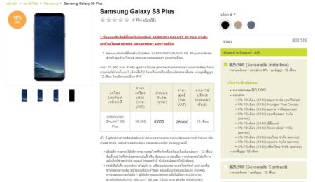 AIS online ให้ลูกค้า Serenade ซื้อ Samsung Galaxy S8 plus เครื่องเปล่าลดทันที 5,000 สั่งวันไหนได้ของวันนั้น