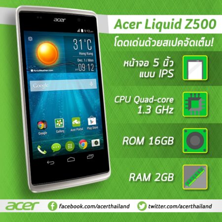 แนะนำ หนึ่งตัวแรง : Acer Liquid Z500 แอนดรอยด์สเปคคุ้ม จอiPS 5 นิ้ว รอม 16GB! ในราคา 5,990 บาท