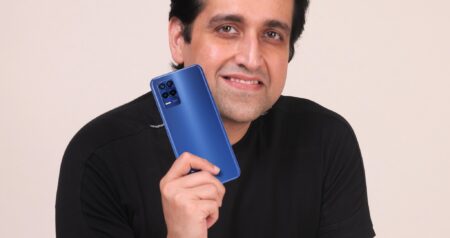 CEO โชว์เอง Madhav Sheth อวด realme 8s 5G ในเครื่องสีน้ำเงิน