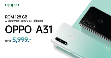 OPPO A31 สเปคคุ้มค่ากับ Rom 128GB พร้อมเป็นเจ้าของในราคา 5,999 บาท