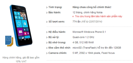 หลุด Nokia Lumia 530 Dual Sim บนเว็บไซต์เวียดนาม วางจำหน่ายสิงหาคมนี้