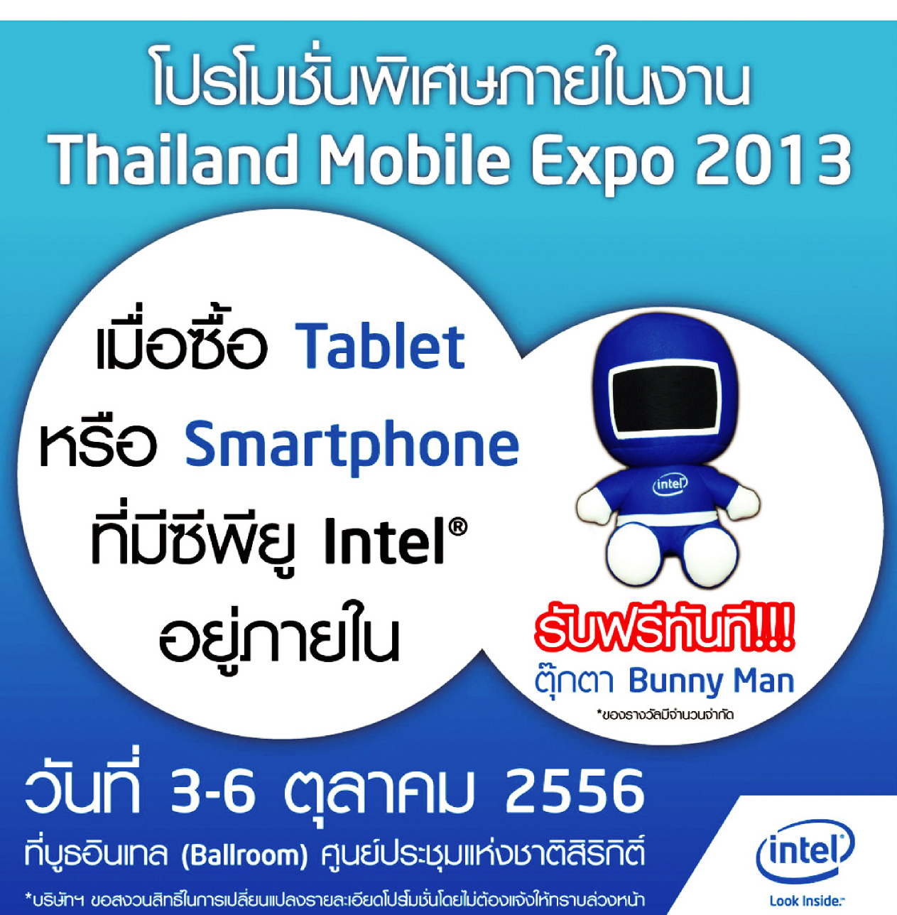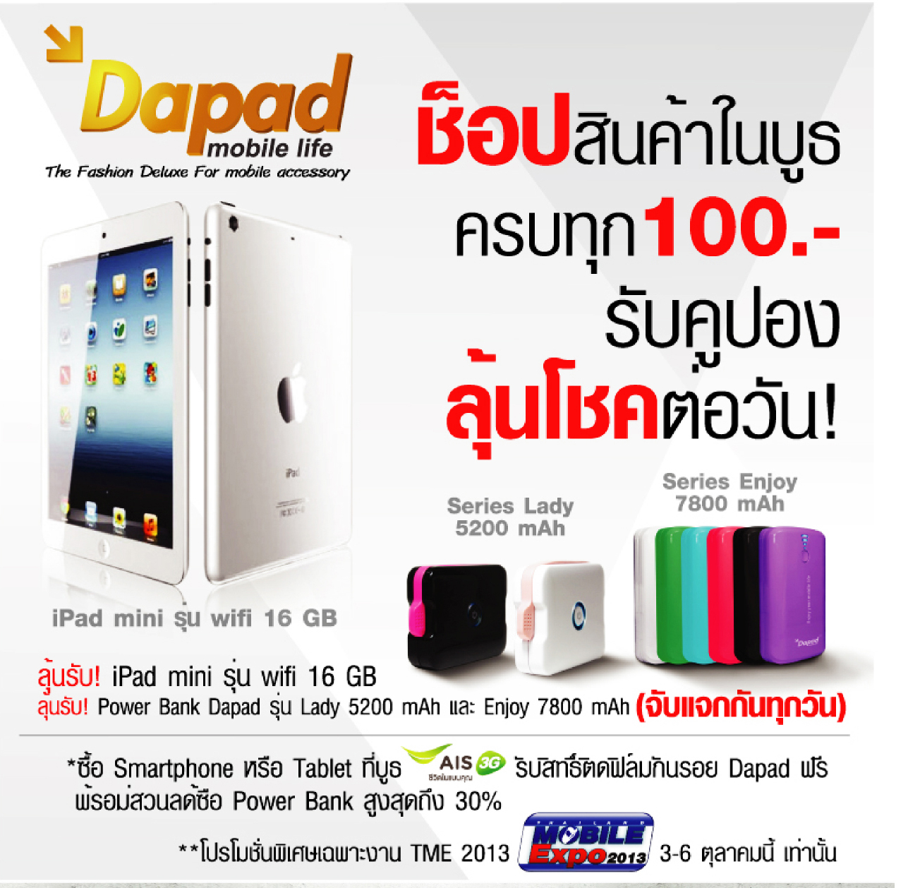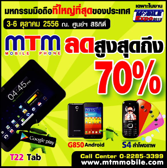 ยัง! มันยังไม่หมดเพียงเท่านี้ ตามสัญญาที่เราให้ไว้ว่าเราจะพาทัวร์ให้ทั่วงาน Thailand Mobile Expo 2013 ระหว่างวันที่ 3 – 6 ตุลาคม 2556 นี้กันแบบเต็มๆ ก่อนงานเริ่มเสียอีก เราจึงจัดเต็ม พาโปรโมชั่นสุดคุ้มพร้อมกิจกรรมดีๆ จากค่ายอื่นๆ ที่เหลือมาฝากเพื่อนๆ กันอีกเพียบ คลิกดูได้จากรูปภาพด้านล่างนี้เลย!!!