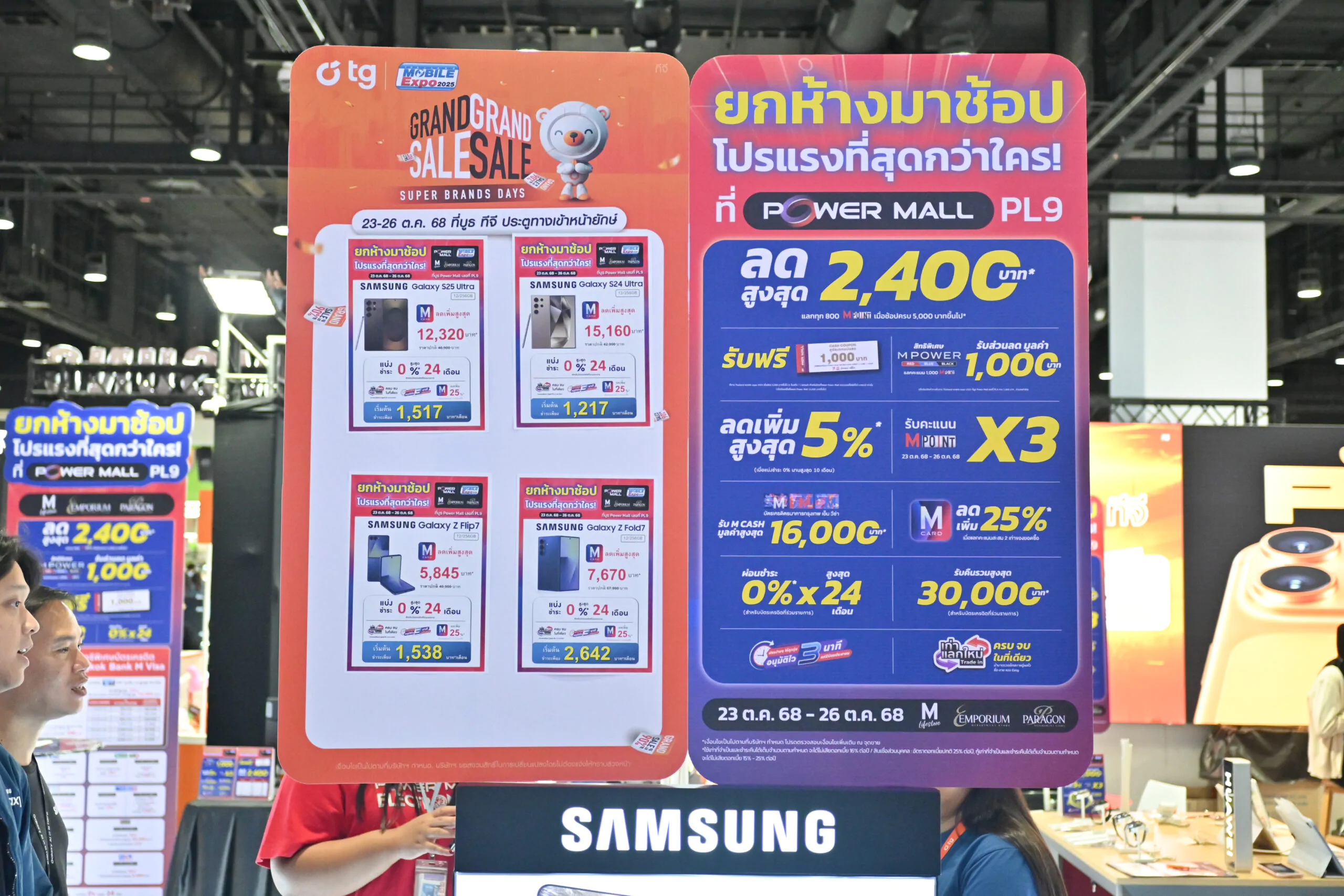จุดเด่นสำคัญที่ทำให้งาน Thailand Mobile Expo เป็นที่รอคอยของประชาชนทั่วไปคือ การรวมตัวของสมาร์ทโฟนรุ่นใหม่ล่าสุดจากทุกแบรนด์ชั้นนำ ไม่ว่าจะเป็น Samsung, Apple, HONOR, HUAWEI, OPPO, vivo, Xiaomi ฯลฯ รวมถึงผู้ให้บริกาเครือข่ายอย่าง AIS และดีลเลอร์ Advice, BaNANA, TG, Jaymart พร้อมโปรโมชั่นและ ราคาสุดพิเศษที่หาไม่ได้จากที่อื่น ผู้เข้าร่วมงานยังจะได้พบกับส่วนลด, ของแถม, และโปรโมชั่น Cash back ที่น่าสนใจจากบรรดาดีลเลอร์ ผู้ให้บริการเครือข่ายโทรศัพท์ และบัตรเครดิตที่เข้าร่วม รวมถึงสินค้า Clearance ที่นำมาจำหน่ายภายในงานด้วย