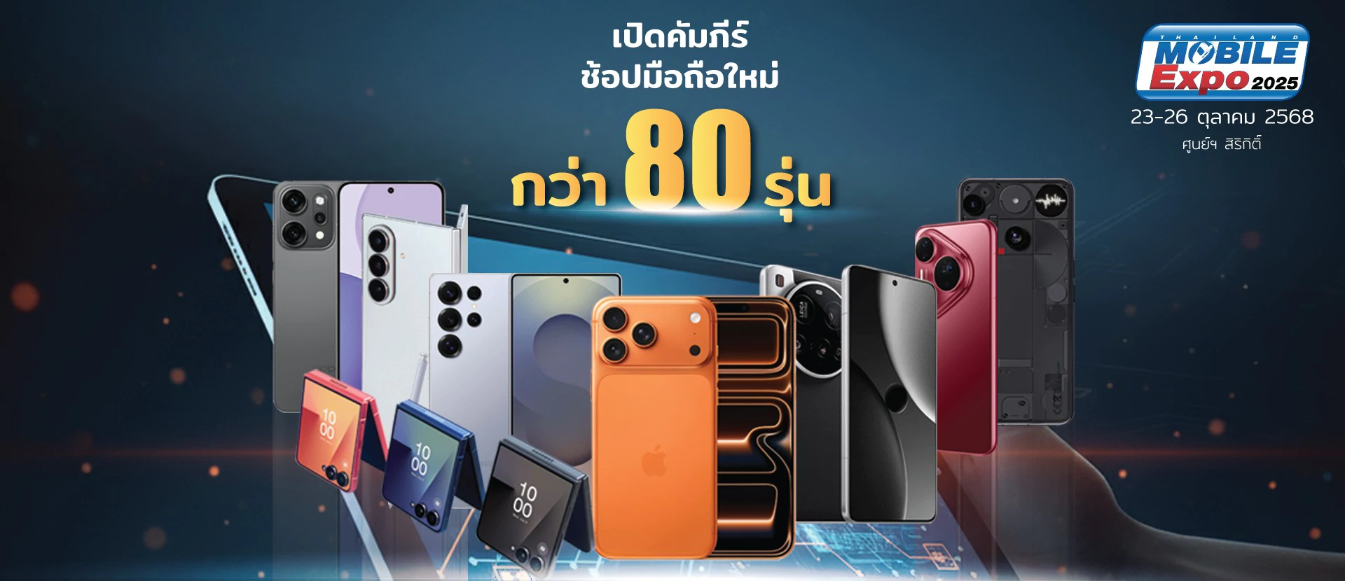 งานมหกรรมมือถือที่ใหญ่ที่สุดแห่งปีกลับมาอีกครั้ง! Thailand Mobile Expo 2025 พร้อมจัดเต็มด้วยสมาร์ทโฟนรุ่นใหม่ล่าสุดกว่า 80 รุ่นจากแบรนด์ชั้นจากแบรนด์ต่างๆ ไม่ว่าจะเป็นเรือธงสเปกจัดเต็ม มือถือกล้องเทพหรือรุ่นคุ้มค่าในงบประมาณที่ใช่ มีให้เลือกครบทุกความต้องการพร้อมโปรโมชั่นสุดพิเศษ ของแถมเพียบ และดีลสุดคุ้มที่ไม่ควรพลาด!