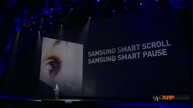 นี่คือฟีเจอร์ที่พูดถึงกันมาตลอด คือการทำงานของเซ็นเซอร์ที่ตรวจจับการมองและแกนศรีษะ จะหยุดเล่นวีดีโอเมื่อเราไม่มองจอ และการควบคุมหน้าจอเลื่อนขึ้นลงโดยใช้การมองได้ด้วยเช่นกัน