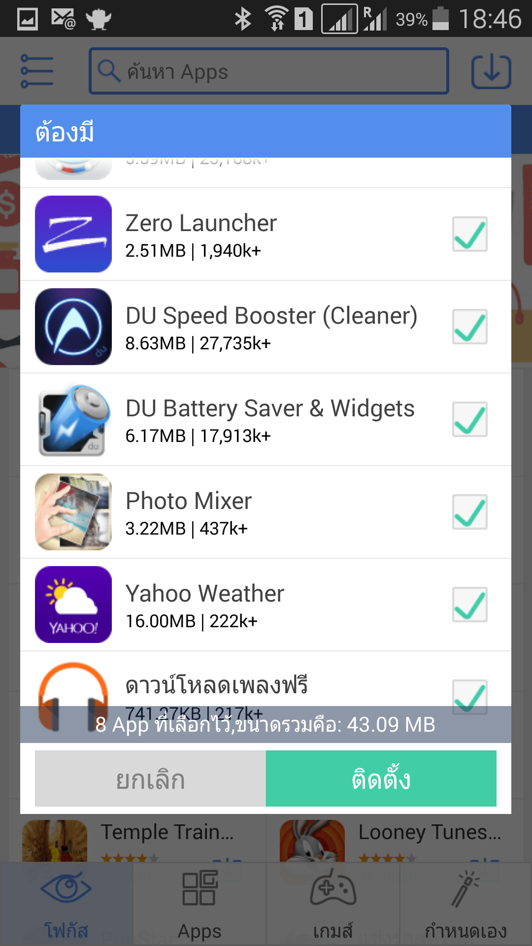 -ในการติดตั้งครั้งแรก MoboMarket จะแนะนำแอพพลิเคชั่นหนึ่งชุดมาให้เราครับ เลือกเอาอันที่จะใช้ หรือกดยกเลิกไปก่อนได้ครับ-