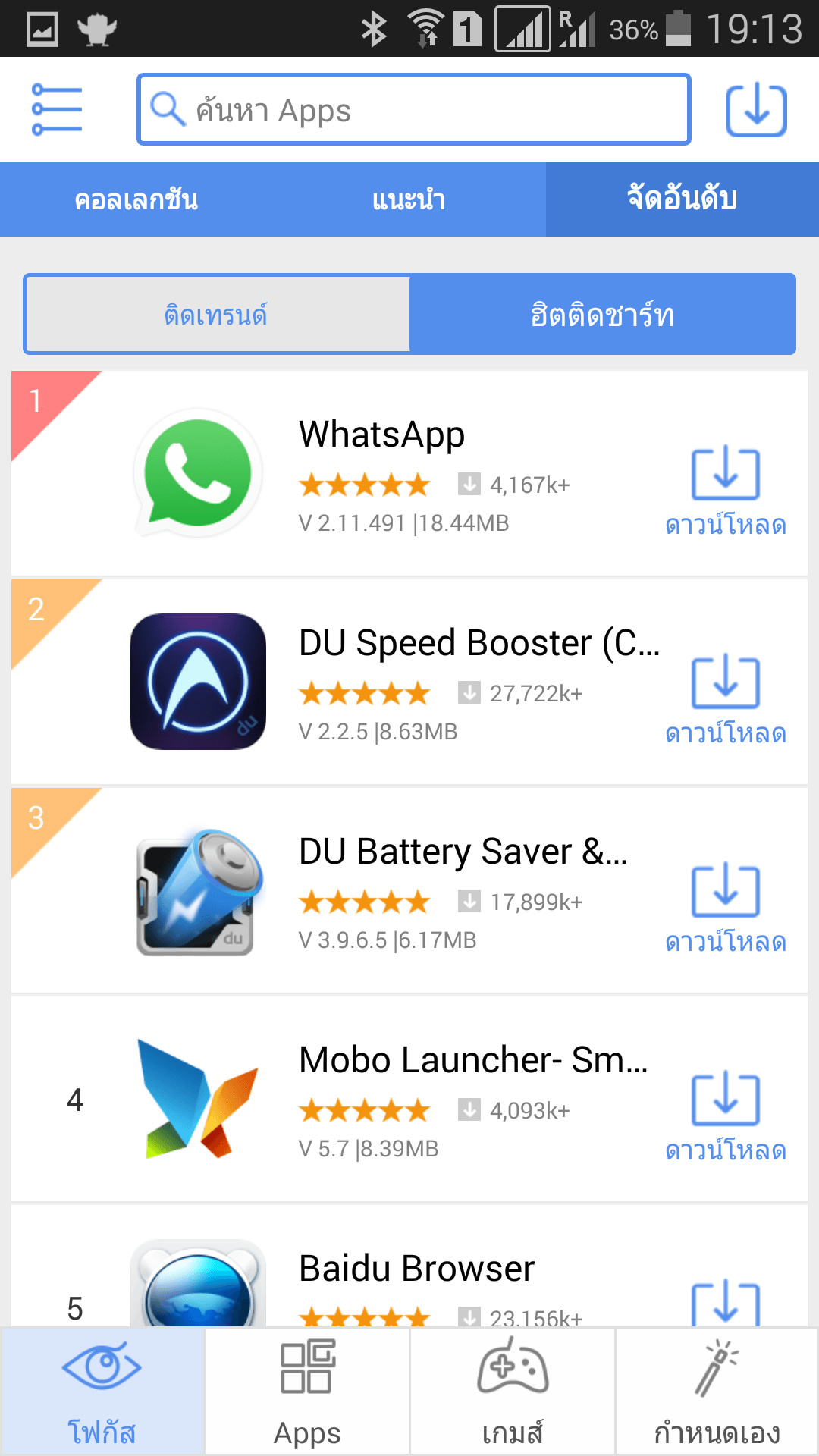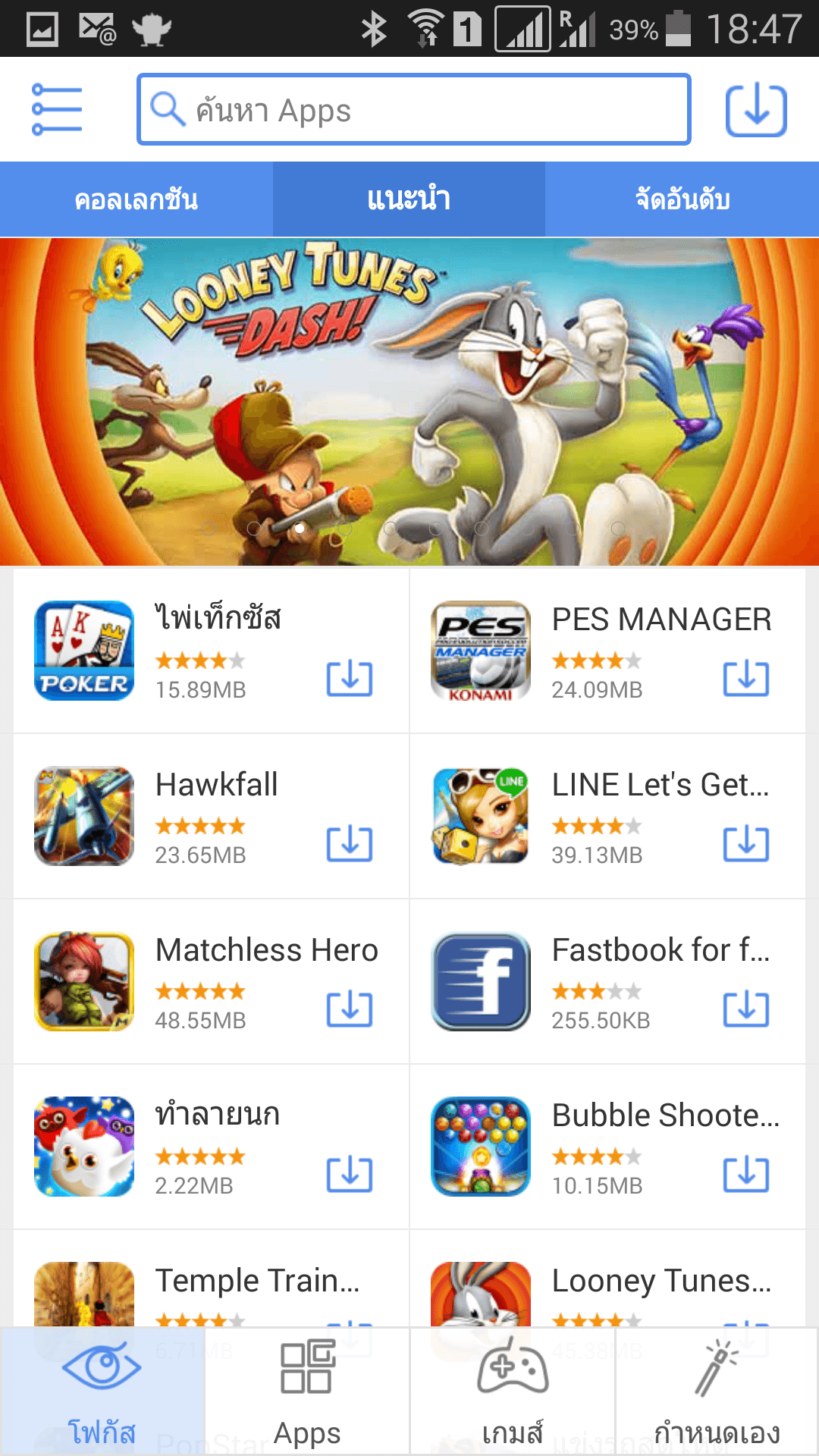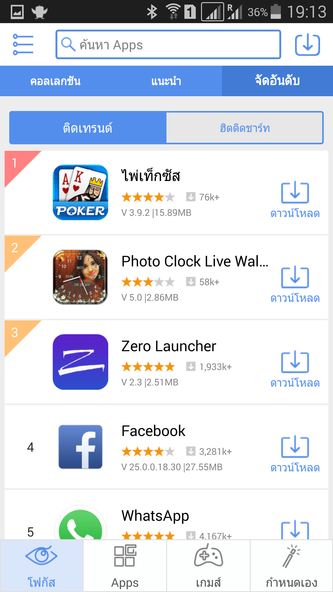 ตัวแอพพลิเคชั่น MoboMarket จะแนะนำแอพพลิเคชั่นและเกมโดยการแยกหมวดหมู่ได้อย่างเข้าใจง่ายๆ แยกตามความฮิต แยกตามการแนะนำ แยกตามประเภท เมื่อเราเข้าใช้งานก็น่าจะสามารถเข้าใจได้ทันทีครับ อยากได้แอพพลิเคชั่นไหนก็แค่กดติดตั้งเท่านั้นก็พอ