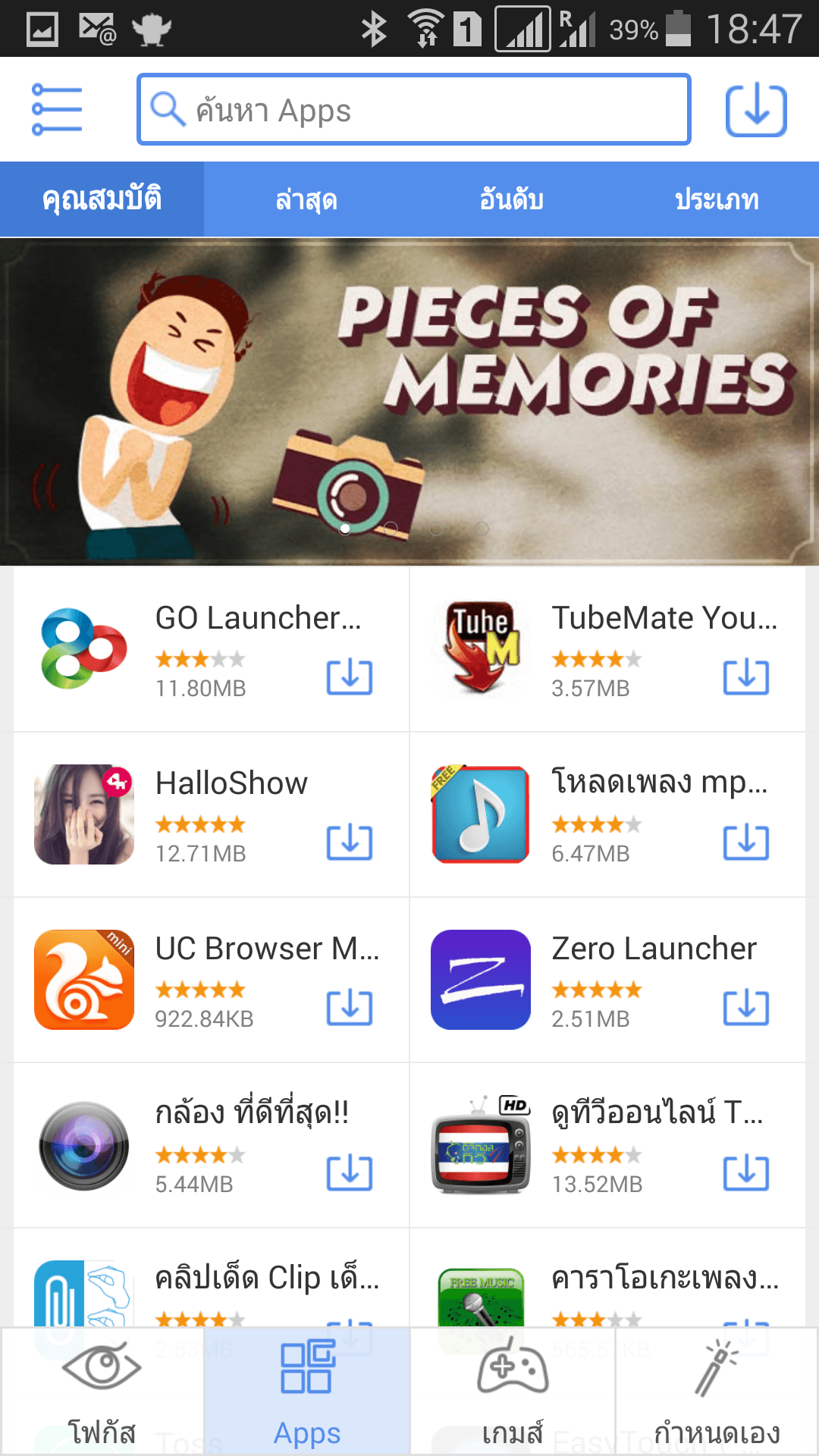 MoboMarket จะมีความสามารถหลายอย่างในตัวมันเอง หลักๆ ก็จะทำหน้าที่เป็นแหล่งดาวน์โหลดแอพพลิเคชั่นให้กับเราเนี่ยแหละครับ แต่จะพิเศษกว่าคือ “ความง่าย” และ “ความเข้าใจ” คนไทยได้มากกว่านั้นเอง