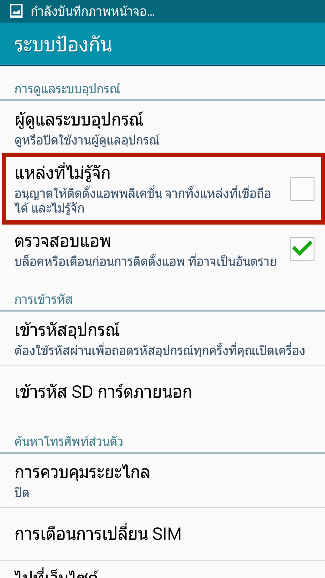 ***สำหรับที่มีปัญหาในการติดตั้งเนื่องจากเครื่องไม่อนุญาตให้ติดตั้งแอพพลิเคชั่นจากภายนอกสโตร์ ให้ทำการเปิดการอนุญาตซะก่อนนะครับ ในเมนูการตั้งค่า “ความปลอดภัย” หรือ “ระบบป้องกัน” เข้าไปแล้วจะเจอตัวเลือกที่เขียนว่า “แหล่งที่ไม่รู้จัก” ให้ทำการเลือกหรือเปิดอนุญาตซะก่อนนะครับ