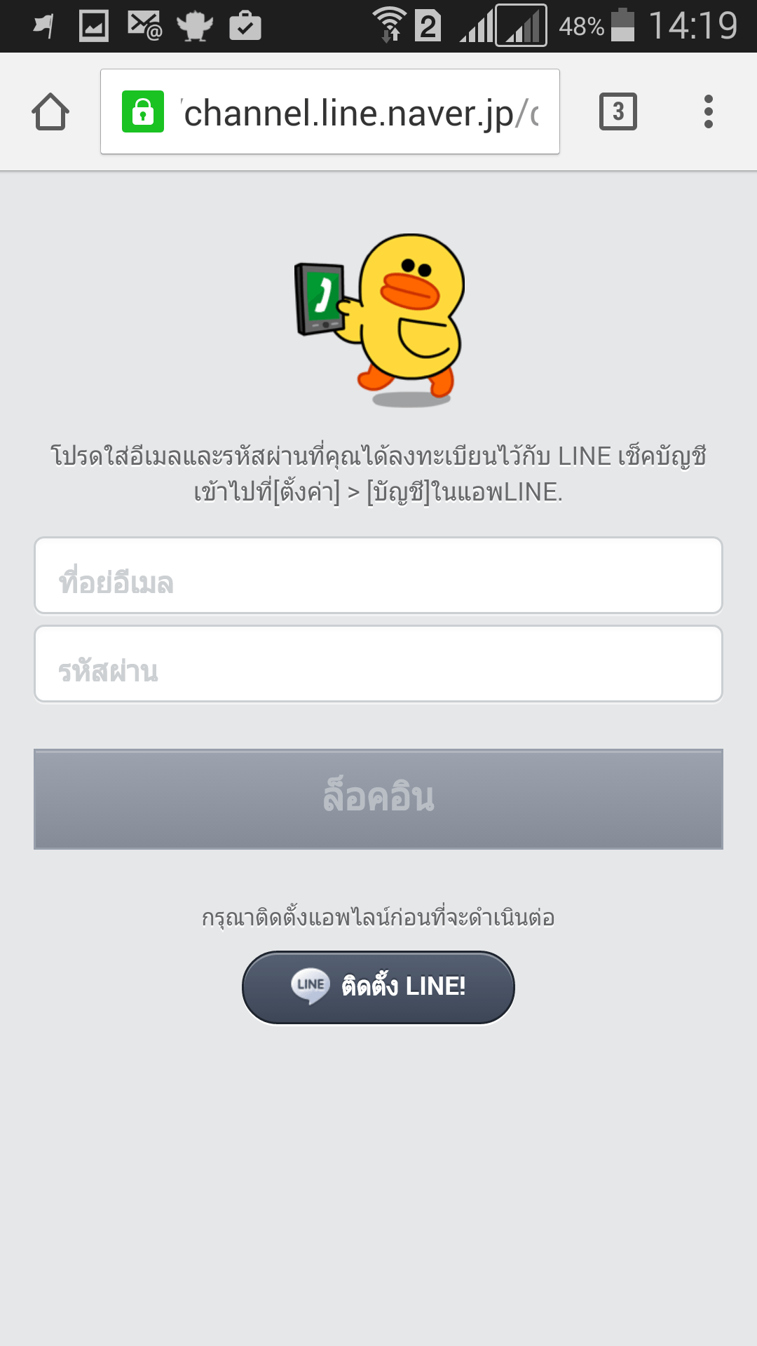 ก่อนอื่นให้เราทำการลงทะเบียนไอดี Line ของเราภายในแอพพลิเคชั่นซธก่อนนะครับ ลงทะเบียนด้วยอีเมล เพื่อเอาไว้ใช้ยืนยันตัวบุคคลของเราเอง แล้วจากนั้นก็เข้าไปที่หน้าเว็บของ Line ได้เลย จะเข้าด้วยเบราว์เซอร์บนโทรศัพท์หรือบน PC ก็ได้ครับ ที่นี่ https://store.line.me/
