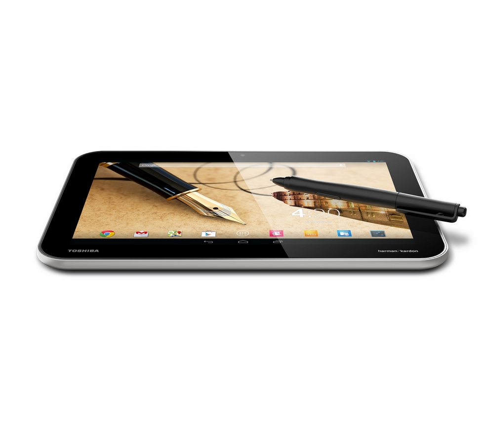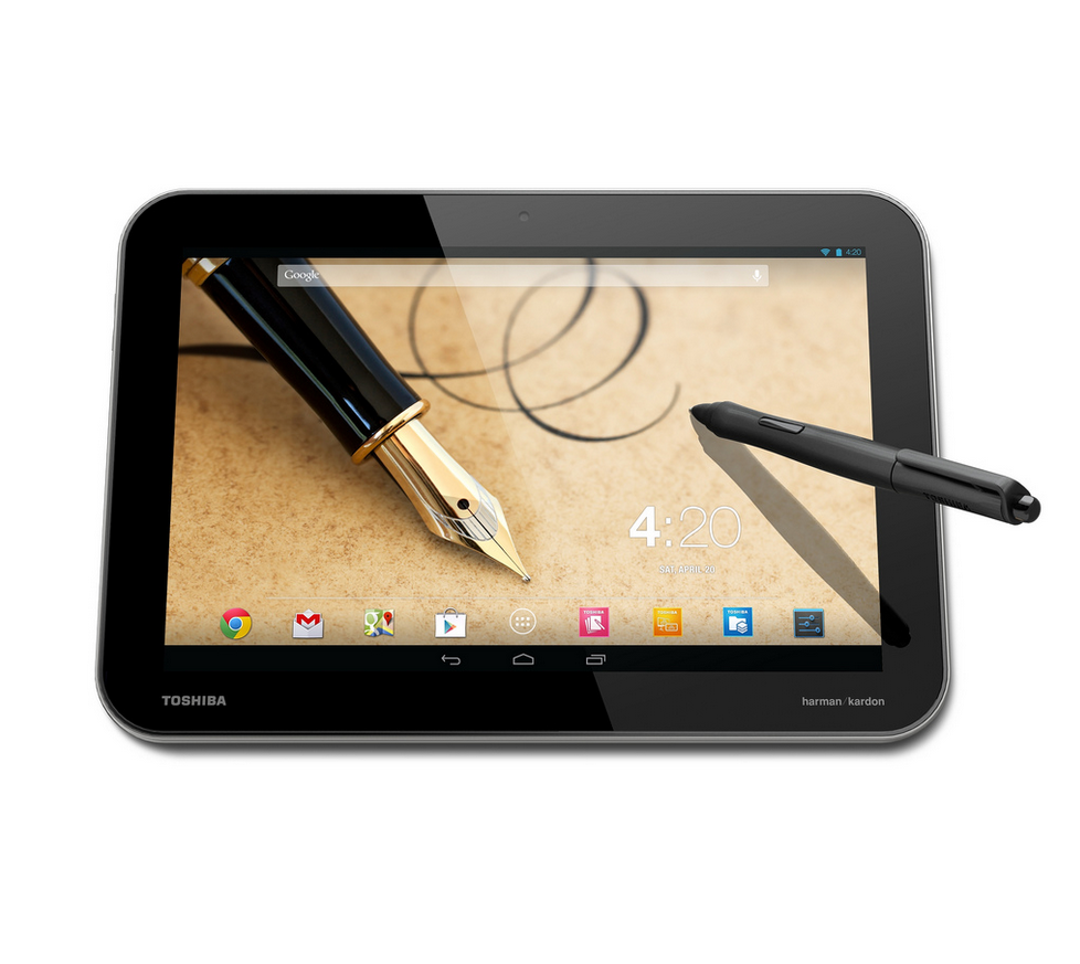Excite Write พี่ใหญ่สุดจากทาง Toshiba ซึ่งโดยส่นใหญ่ จะมีรายละเอียดของต้วเครื่องเหมือนกันกับตัว Excite Pro แต่สิ่งที่เพิ่มเติมเข้ามานั้นคือการใช้งานร่วมกันกับ “TruPen” ปากกาเขียนหน้าจอ 1024-point pressure sensitive stylus เทคโนโลยีของปากกาเขียนจอตัวใหม่ที่ทาง Toshiba ภูมิใจนำเสนอ พร้อมแอพพลิเคชั่นที่รองรับการใช้งานด้านเอกสารและงานขีดๆเขียนๆ อย่าง “TruNote,” และ ThinkFree Office ใช้กระจก Gorilla Glass 2 เพื่อปกป้องมลทินจากการขีดของหัวปากกา