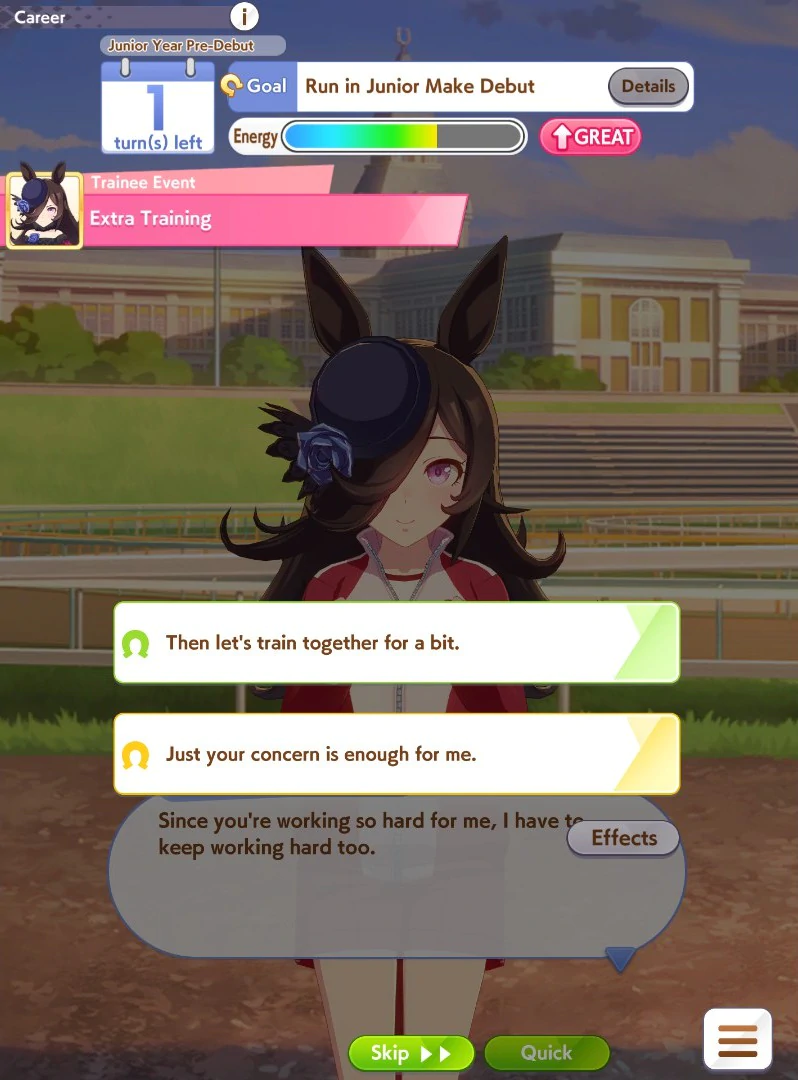 Umamusume: Pretty Derby คือเกมที่เล่นสนุกและเหมาะกับการเล่นฆ่าเวลา ด้วยความที่ตัวเกมไม่ได้กินเครื่องมาก หรือต้องการการโหลดที่นานจนเบื่อ จึงเหมาะสมเป็นเกมโทรศัพท์แบบแท้จริง แถมยังทำให้คอมมูนิตี้การแช่งม้ากลับมาคึกคักสร้างกระแสไปทั่วโลก เกมเพลย์เล่นง่าย และไม่เหมือนใคร เหมือนเราได้จำลองเลี้ยงม้าแข่งจริงๆ