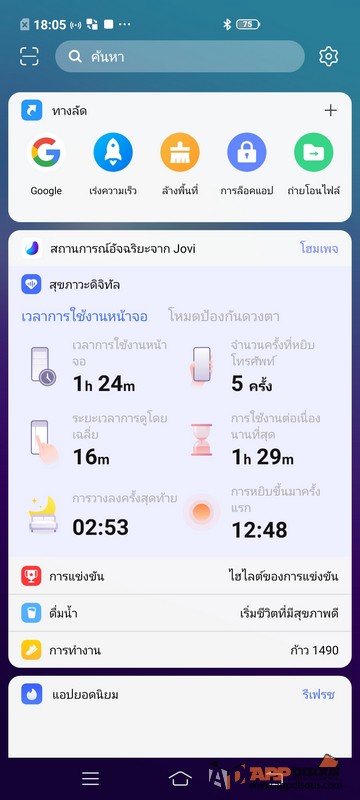 ใน FunTouchOS มีฟีเจอร์หลายตัวที่ผู้ใช้น่าจะชอบ เช่นพวกโหมดถนอมสายตาต่างๆ อย่างโหมดลดแสงสีฟ้าลดอาการเมื่อยล้าของตา และโหมดมืด ที่ปรับให้ธีมและหน้าเมนูต่างๆ ของเครื่องให้กลายเป็นสีดำ เพื่อความสบายตาและมีผลต่อการใช้งานของแบตเตอรี่ด้วยครับ
