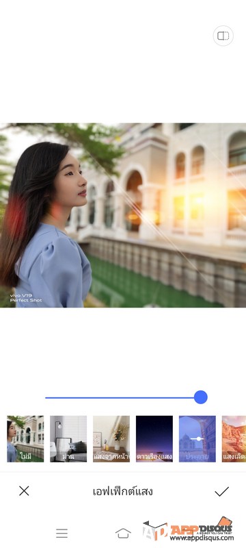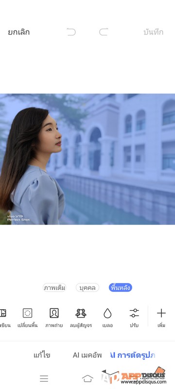 แต่ใน Vivo V19 ทำได้ไปยิ่งกว่านั้น ด้วยการที่มันสามารถระบุแยกภาพได้ชัดเจนมาก ว่าตรงไหนคือตัวบุคคล และตรงไหนคือฉากหลัง และรู้ด้วยว่ามีกี่บุคคลอยู่ภายในภาพ มันจึงสามารถปรับแต่งได้เพิ่มเติมอีกมากมายเช่น ปรับแต่งเฉพาะตัวบุคคลหรือฉากหลังด้วยฟิลเตอร์ หรือการใส่เอฟเฟ็กต์โอเวอร์เลย์ต่างๆ ถ้าระบบ AI ยังตัดตัวบุคคลไม่คมพอ ตัวระบบก็เปิดให้เราสามารถเพิ่มเติมส่วนที่ขาดหรือลบส่วนที่เกินทิ้งได้ครับ
