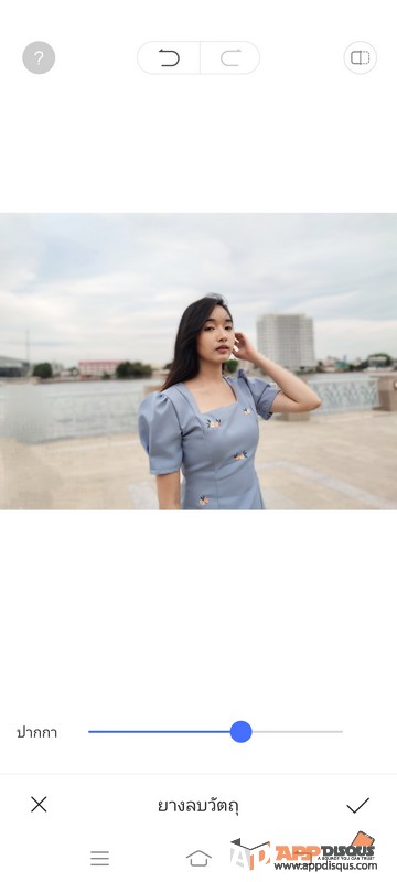 หรือจะลบสิ่งที่ไม่ควร หรือบุคคลส่วนเกินที่มีอยู่ในภาพออกไปก็ได้ แต่ความสามารถลบวัตถุในภาพแบบนี้เป็นแบบกึ่งอัตโนมัติ จำเป็นต้องใช้กับภาพที่พื้นหลังค่อนข้างเรียบเป็นสีเดียวนะครับ ไม่งั้นภาพในส่วนถูกลบจะเกลี่ยออกมาไม่ค่อยเนียนเท่าไหร่ แม้ความสามารถของมันจะยังทำได้จำกัด แต่ผมก็มองว่ายังเป็นฟังก์ชั่นที่ปกติไม่ค่อยเจอในตัวกล้องถ่ายภาพของสมาร์ทโฟนกันครับ