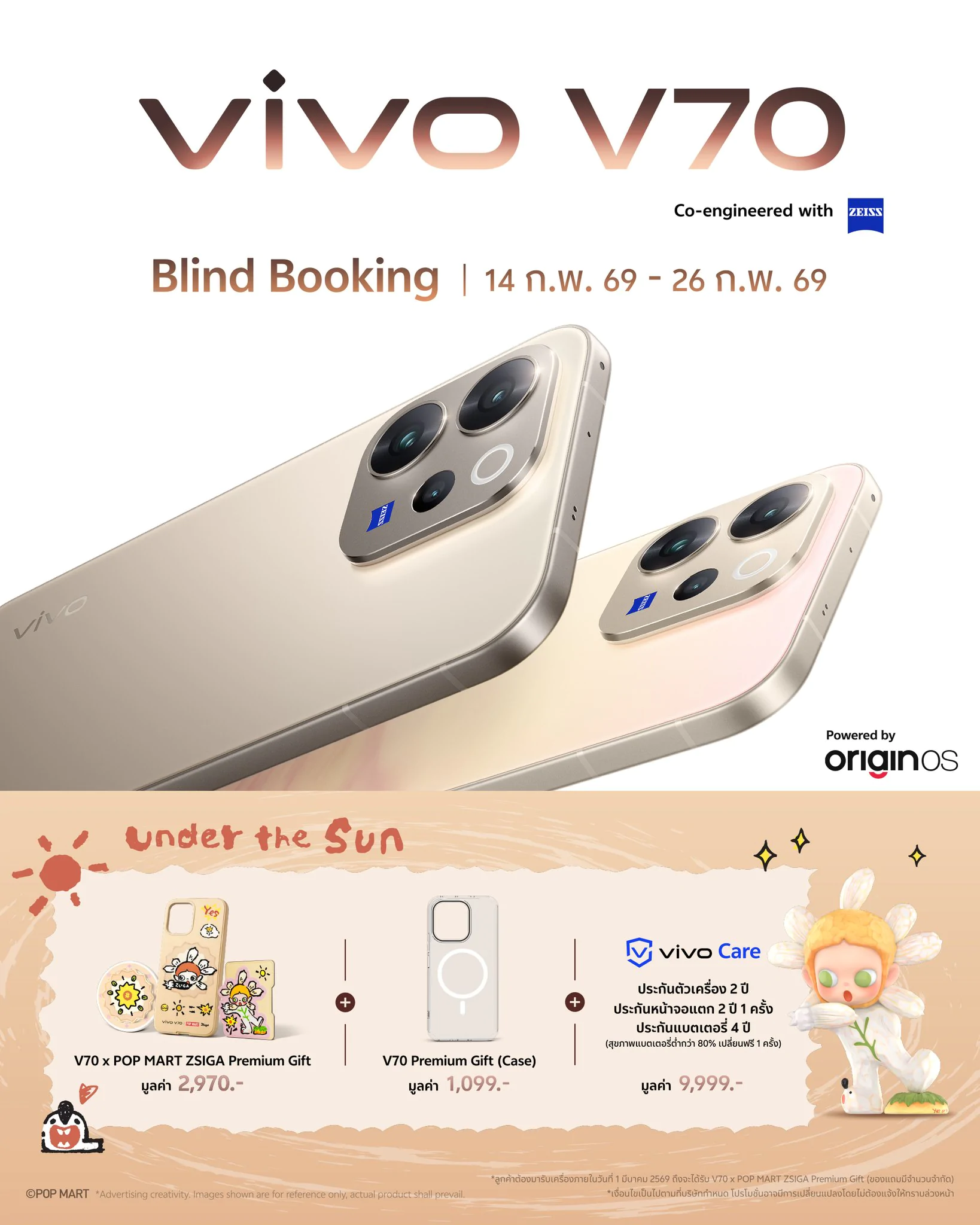 ผู้ที่สนใจจอง vivo V70 ในช่วงโปรโมชั่นระหว่าง 14 – 26 กุมภาพันธ์ 2569 จะมีของสมนาคุณที่น่ารักมาๆ เตรียมไว้ให้ด้วย ได้แก่