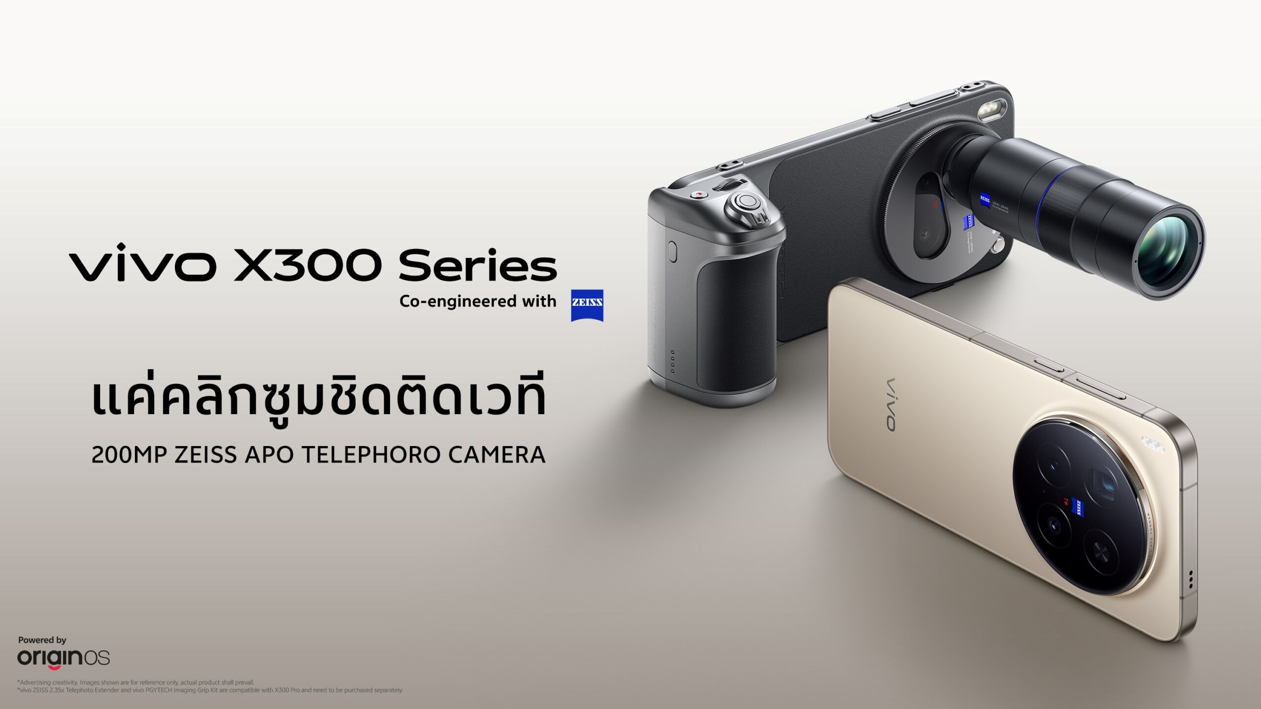 vivo X300 Series ถูกออกแบบมาเพื่อสานต่อความเป็นผู้นำด้าน ‘สมาร์ตโฟนสำหรับสายคอนเสิร์ต’ อย่างแท้จริง โดยเรือธง vivo X300 Pro การันตี 6 ความเป็นที่สุดในอุตสาหกรรมถ่ายภาพบนสมาร์ตโฟนด้วยกล้องเทเลโฟโต้ ZEISS APO ความละเอียด 200 ล้านพิกเซล ผสานพลังกับชิปประมวลผลภาพขั้นสูง ในขณะที่ vivo X300 ก็ได้รับการอัปเกรดประสิทธิภาพที่เหนือระดับไม่แพ้กัน ด้วยกล้องหลัก ZEISS ความละเอียด 200 ล้านพิกเซล ที่พร้อมเก็บทุกรายละเอียดอย่างสมบูรณ์แบบ นอกจากนี้ vivo ยังจุดกระแสความตื่นเต้นด้วยการเตรียมเปิดตัว ชุดเลนส์เสริมกำลังขยาย 2.35 เท่า vivo ZEISS 2.35x Telephoto Extender ครั้งแรกในประเทศไทย โดยมีเป้าหมายเพื่อยกระดับมาตรฐานการซูมของสมาร์ตโฟนให้ก้าวข้ามขีดจำกัดของอุตสาหกรรมในทุกมิติ แค่คลิกเดียว ทุกภาพก็คมชัดราวกับได้ยืนชิดขอบเวทีเก็บทุกรายละเอียดด้วยตาตัวเอง