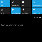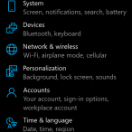 นอกจากนี้ยังมีหน้าจอแสดงส่วนการตั้งค่า (Setting) ที่เปลี่ยนไป โดยมีไอค่อนสำหรับแต่ละการตั้งค่าเพิ่มเข้ามาแบบเดียวกับ Windows 10 สำหรับเครื่องคอมพิวเตอร์ นอกจากนี้ในส่วน Action center ก็มีการเพิ่มตัวเลือกในการจัดการเข้ามาอีก เหมือนกับใน Windows 10 เวอร์ชั่นเครื่องคอมพิวเตอร์เช่นกัน