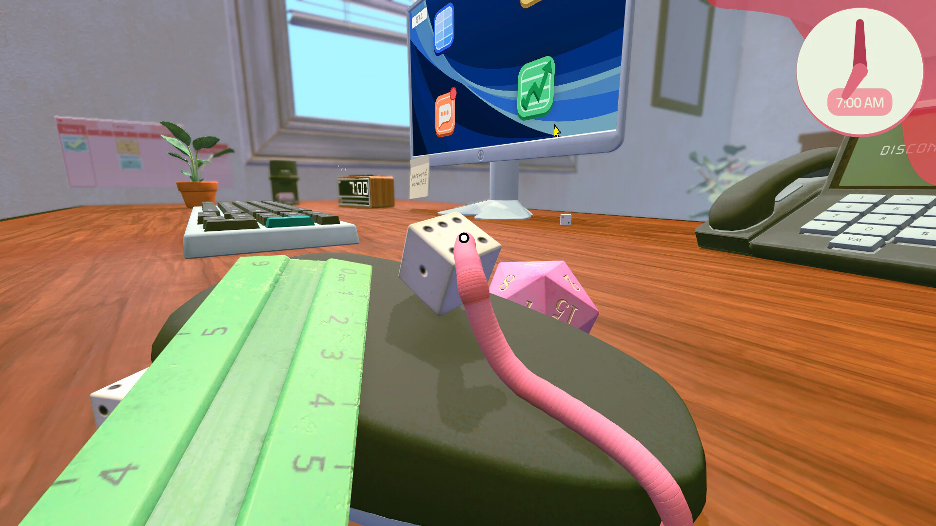 Worming from Home เป็นเกมซิมูเลชันแนวตลกร้ายที่พาผู้เล่นเข้าสู่โลกของการทำงานแบบรีโมตในสายการเงิน แต่ทั้งหมดถูกเล่าใหม่ผ่านมุมมองของ “หนอน” ที่ต้องดิ้นรนเอาตัวรอดบนโต๊ะทำงานและแป้นพิมพ์คอมพิวเตอร์