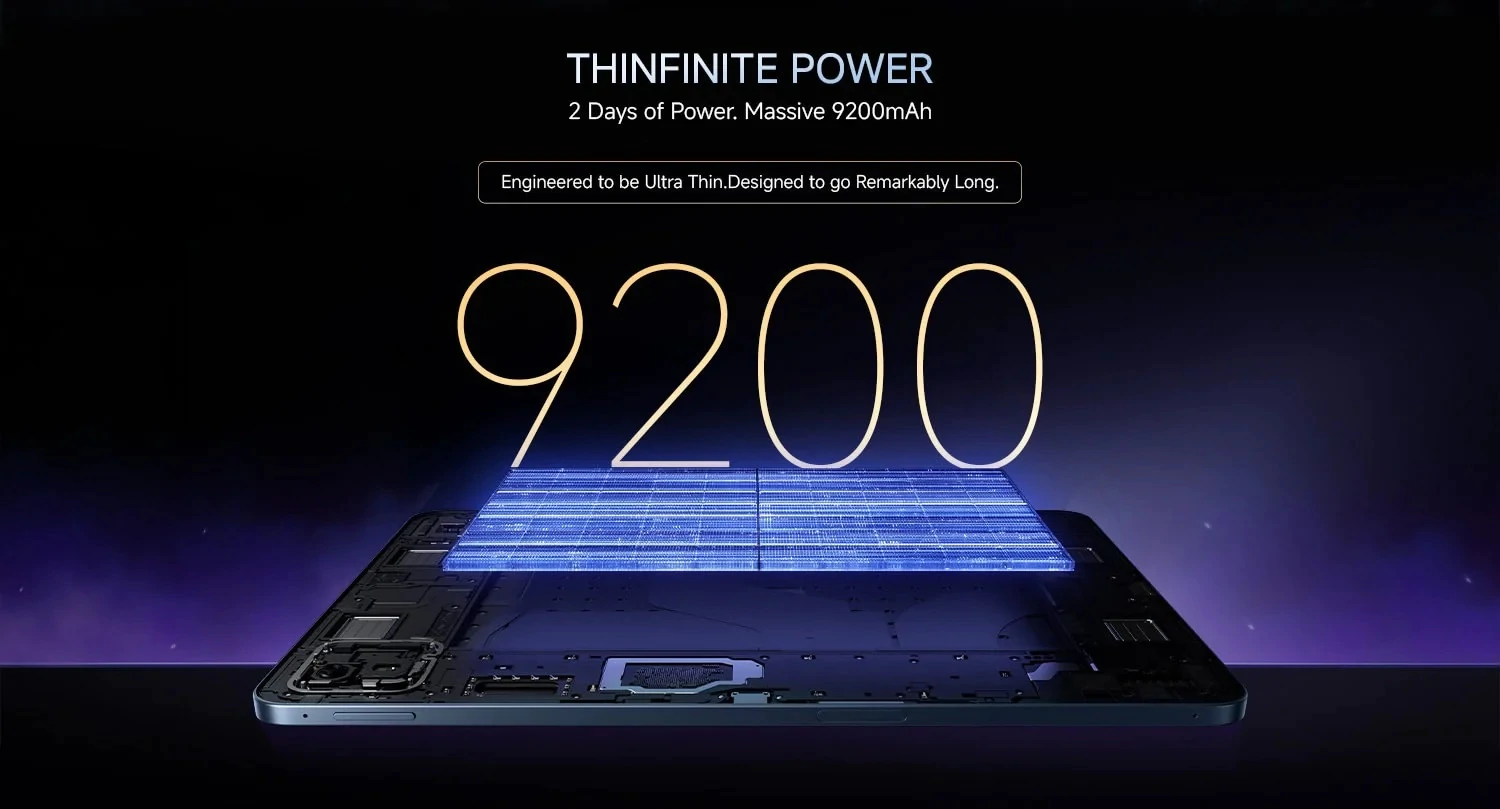 ด้านเสียงให้ลำโพง 4 ตัวพร้อม Dolby Atmos ส่วนการเชื่อมต่อรองรับ Wi‑Fi 7, Bluetooth 5.4 และพอร์ต USB‑C พร้อมเซนเซอร์สแกนนิ้วด้านข้างสำหรับปลดล็อกเครื่อง ตัวเครื่องมีความบางเพียง 5.75 มม. และน้ำหนักประมาณ 485 กรัม ซึ่งถือว่าเบาเมื่อเทียบกับแท็บเล็ตระดับประสิทธิภาพใกล้เคียงกัน